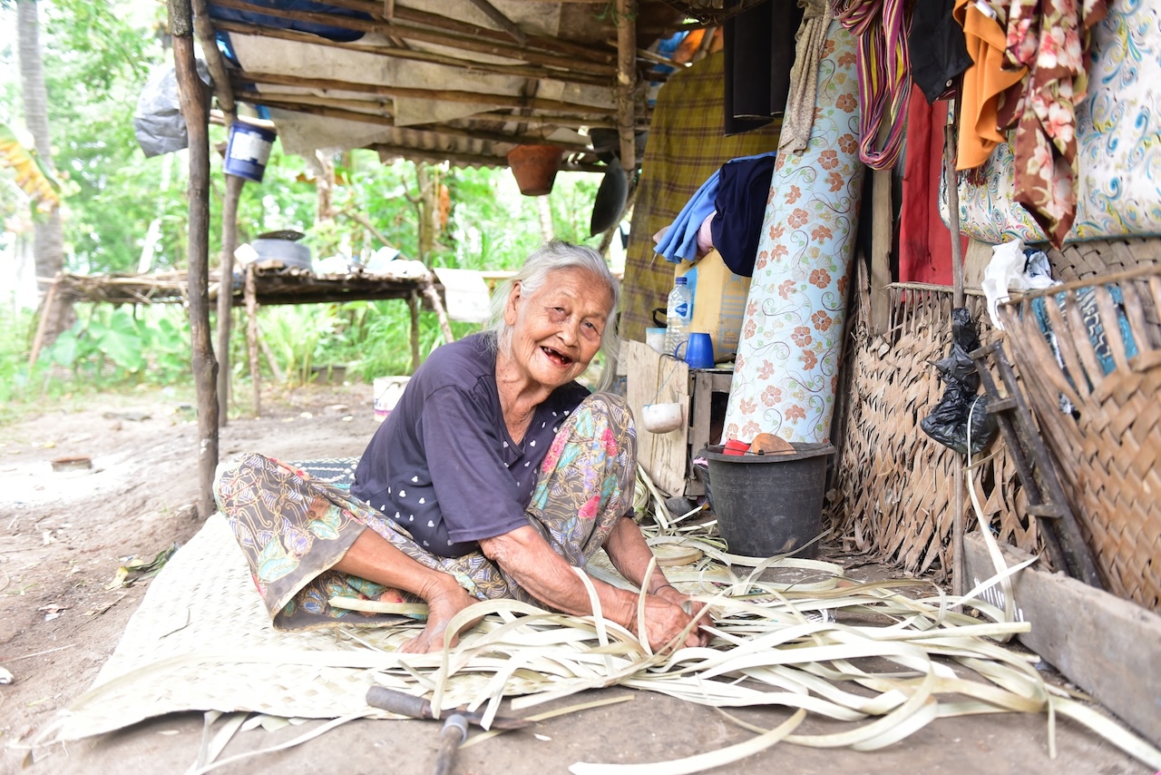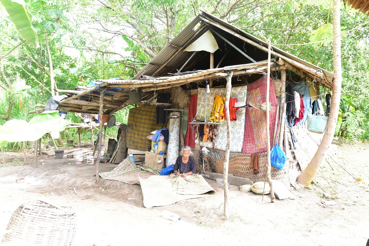 Doncel's Mum making the pandan mats on her terrace, yup that's her house, she was actually given a very pretty bamboo house recently by an NGO, moved into it and a week later moved back to her old place :)