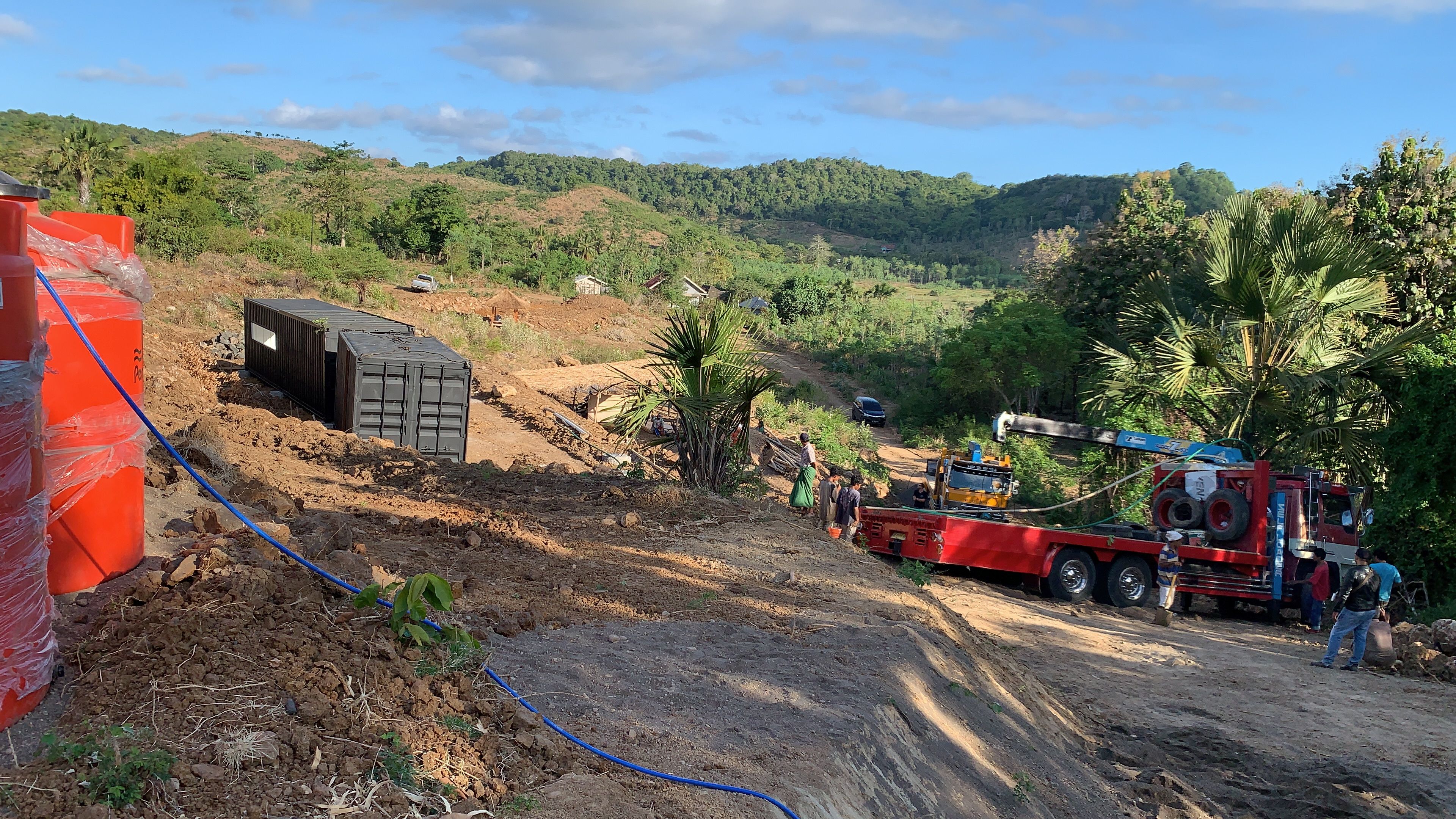 20' on the ground, truck stuck for 24 hours! The reverse warning was an epic recording, every time he wanted to reverse, an Indonesian kids voice says 'Warning warning rich guy wants to reverse' incessantly for 24 hrs soooooo funny …… for us ;) Now every time I reverse around here someone will start shouting ….
