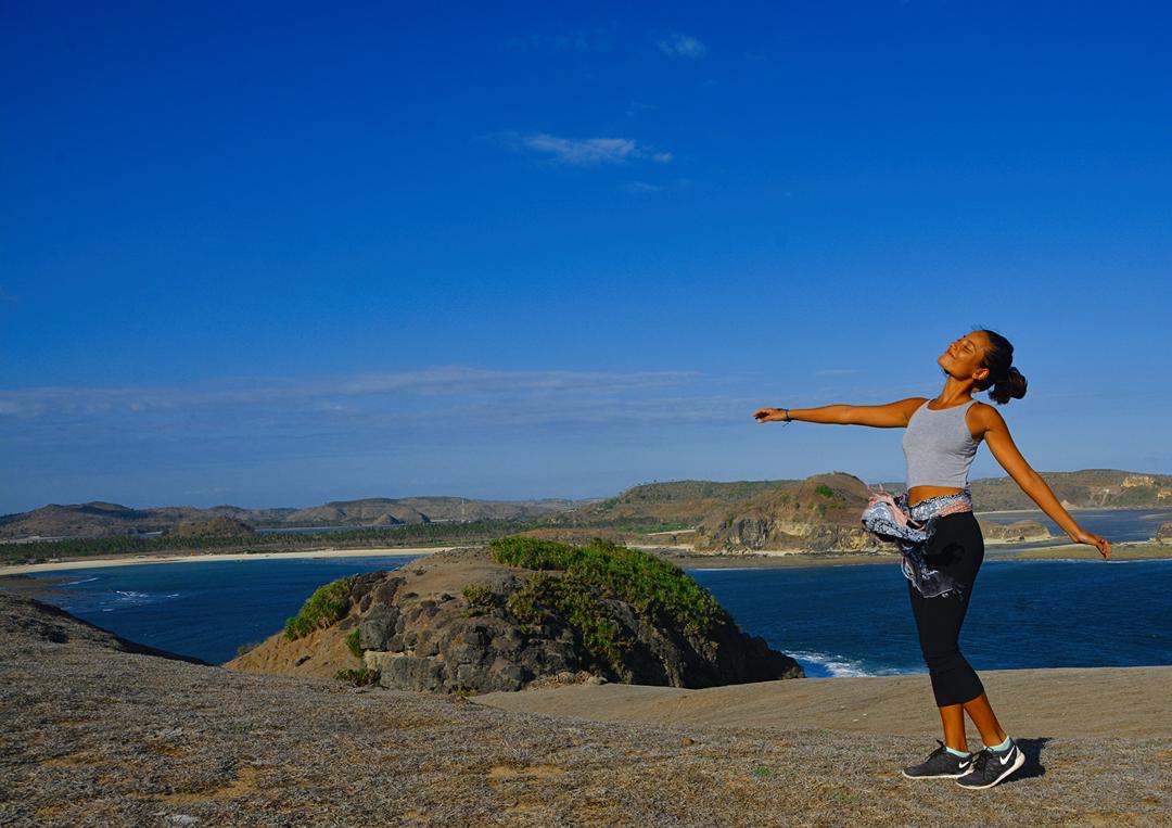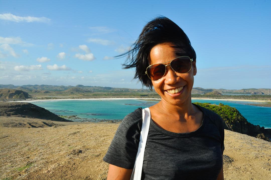 W3WAni in her happy place, Tanjung Aan in the background.
