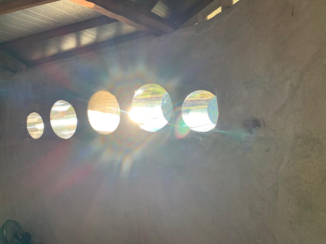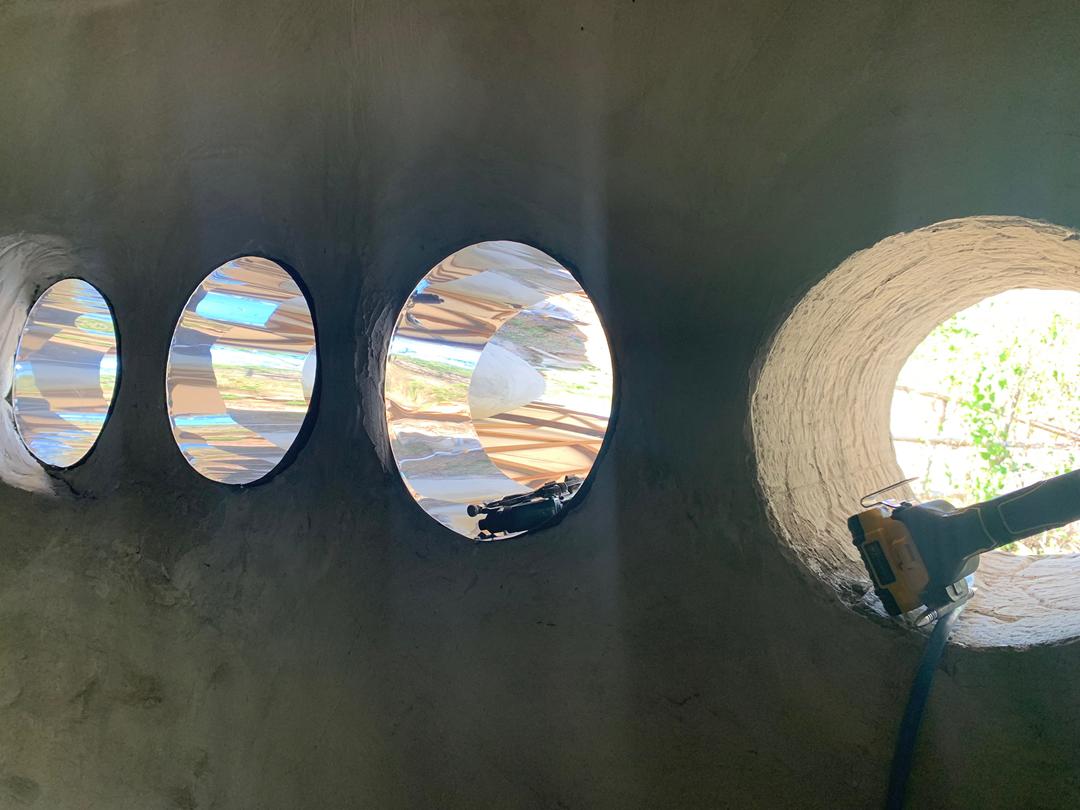 All the other windows took a while to tidy up, many 2am designs. Eventually I bought some stainless steel sheet and rolled it up to fit in the holes and Cherrymax riveted them into place, another helicopter stylee thing! They ended up being way nicer looking than I imagined too! Check out the reflections and the sun getting reflected onto the walls. I used rubber metal edging at the ends, this holds the mosquito netting in place too. The bathroom ones are going to stay like this as it's not going to be air-conditioned but the main room ones are going to have some sort of closing window, maybe polycarbonate or maybe tempered glass saucepan lids :) yet to be designed ……..