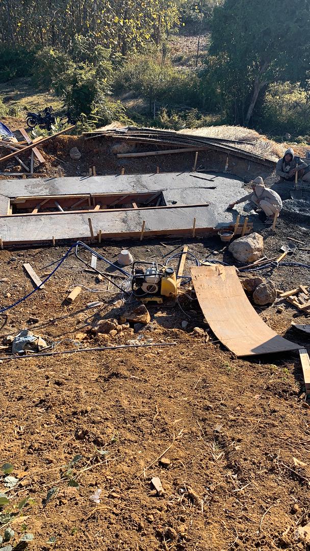 Rocks collected by hand around the plot, the local lads and us. The car park completely covered in two layers over two days! That's Ani carrying some drifwood :)