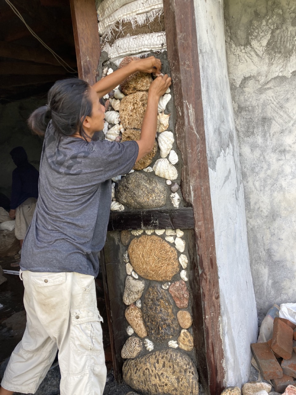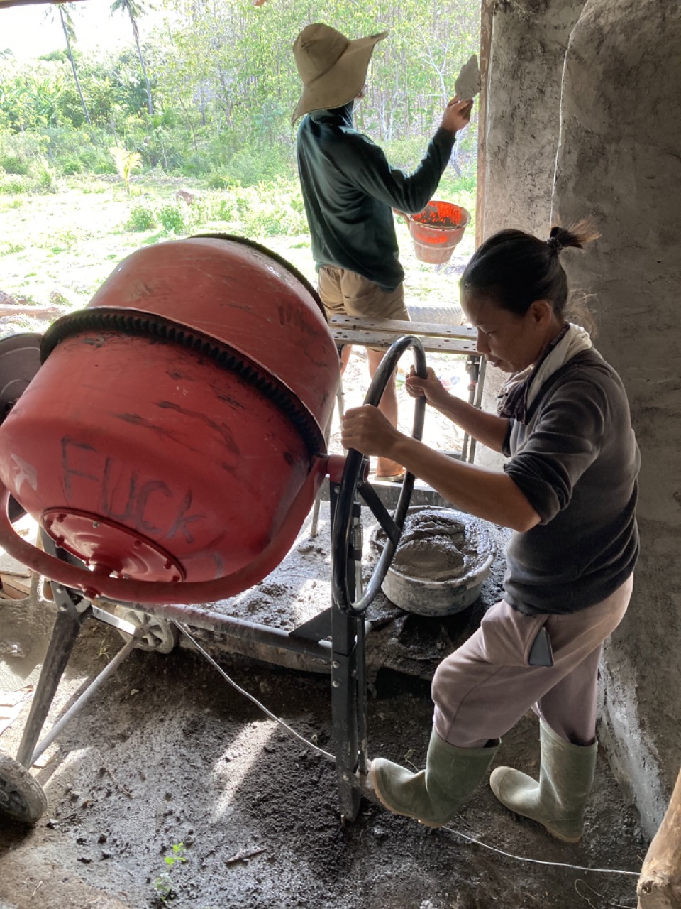 We bought a mixer just for the plaster and Ani got into the mixology.