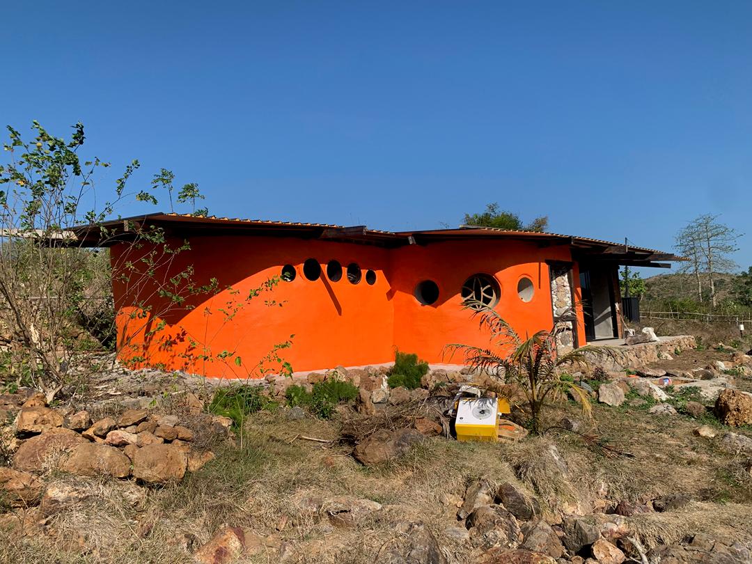 For the outside we googled 'exterior colours that go with a green garden' :) We started with a layer of wall sealer and finished with two coats of the brightest orange on the planet!