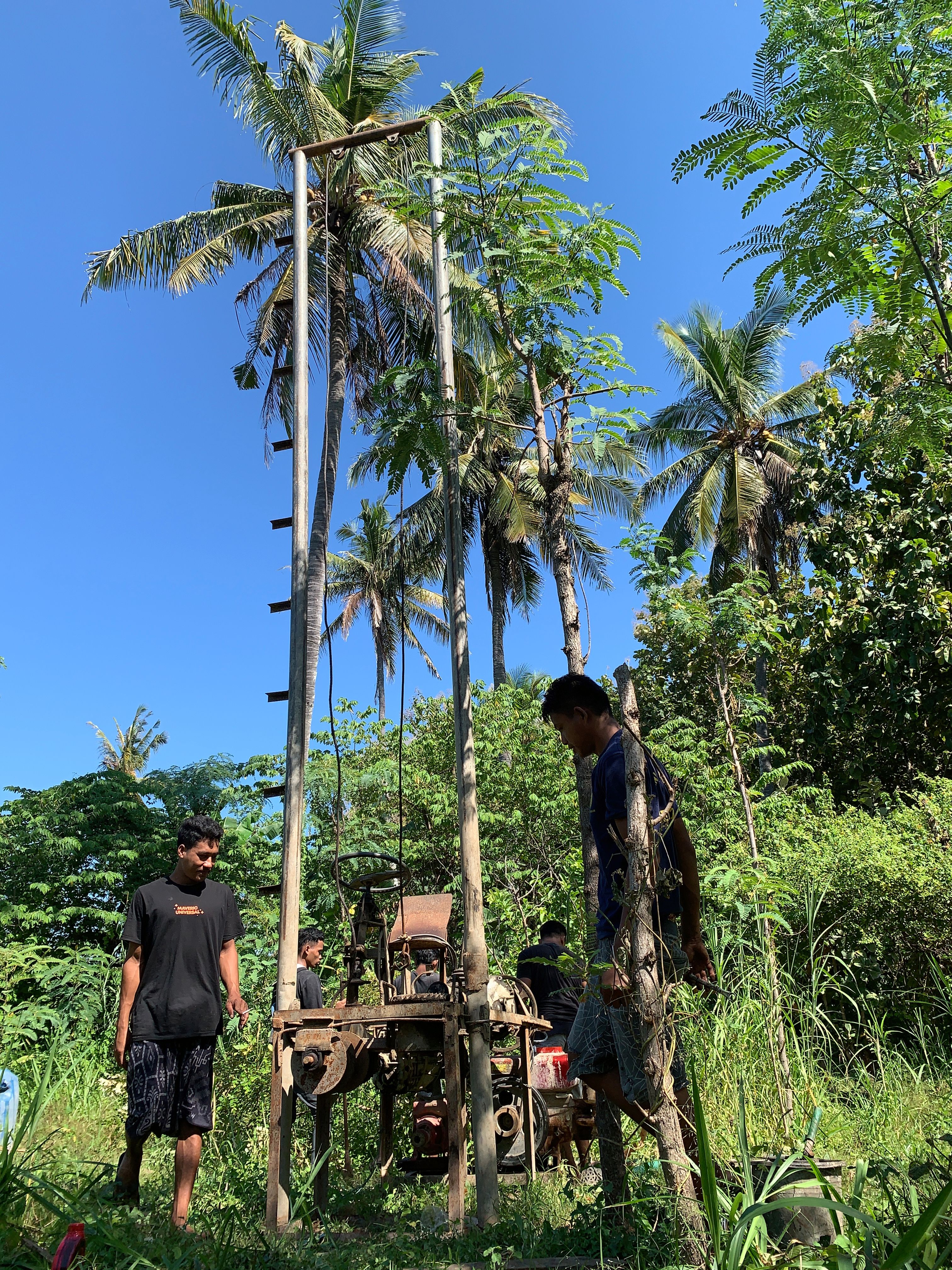 The well drilling unit, part Toyota, part Suzuki, mostly scrap metal welded together, all powered by a generic and geriatric diesel lump!