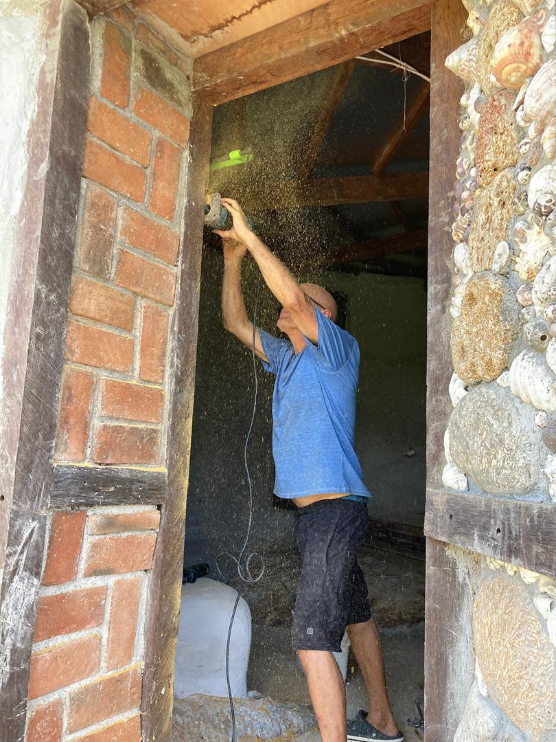 From the outside and inside, we thought we'd put the braces on the inside as that's the nicest looking and the outside will be pimped with some nice accessories, door knocker and faux letter box. Don't need a real letter box because junk mail is non existent in Lombok wooohooo!Later in the blog you may notice the door hinges changed sides, a decision brought about by buying the wrong sided 100+ year old door handles from reclamation in the UK, they would have worked but the keyhole would have been upside down :) The door actually works better opening to the right so alls well that ends well.